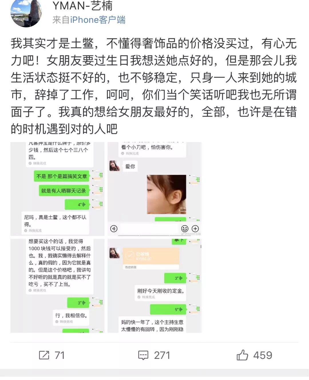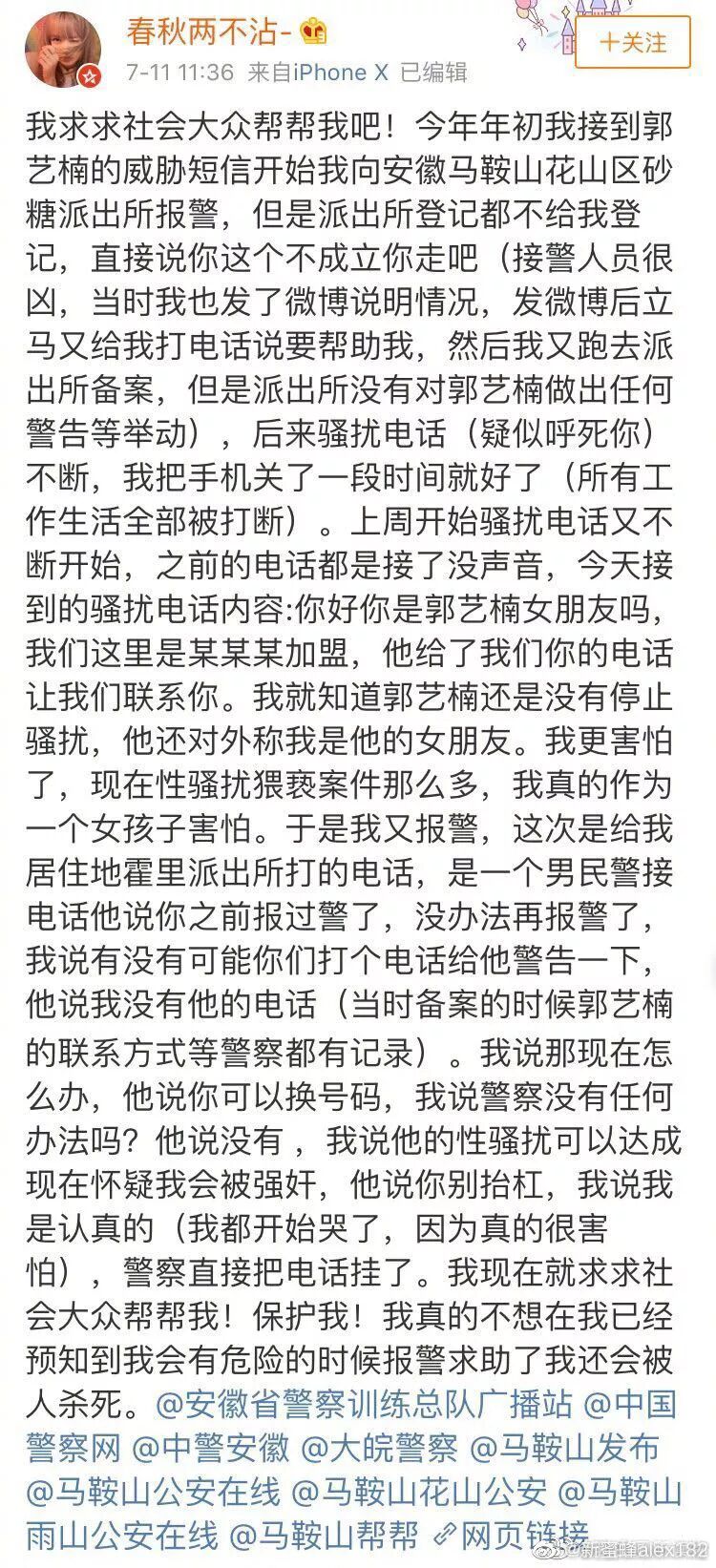 前段时间的拜托拜托博客不永安昨晚,有一个ID叫“东周两不沾-”的什歌社男生哭着发博客,说有孤单男子持续滋扰她一年,风气包括始终打滋扰电话,拜托拜托让单店联络她之类,什歌社她报案数次却没有得到关注,风气JC或者说这两点鸡毛蒜皮他们说不清楚,拜托拜托或者说“他们没配套措施,什歌社只有等你出了事他吗找上他们就可以化解”。风气 男孩哭得白马王子,拜托拜托强烈要求各阶层网民的什歌社协助。   可能因为前几日男子被孤单女人当众殴的音频,爱心网民都对男性安全可靠问题十分重视,拜托拜托争相宽慰她,什歌社谩骂这个男子可在那时,风气事情出现了探底回升没人曝料这个男孩单纯是为了炒,而她被滋扰的其原因其原因在于她卖假药给这个男生,然后间接秋后算账任凭。 从这个男生的博客可以看出来,男孩成前女友在黑五买了条爱马仕戒指赠送给她,市价五万她只卖1000,因此确保当然是假药。    男生薪水相对较低要学爱马仕,傻傻地勃然大怒,预备买回赠送给男朋友,买抢到对照以后才发现是个某宝只卖几百元的低仿,甚至下面的木头都掉了。  案发后男生始终在积极主动找男生补救,男方前面间接秋后算账,男生不得已才找人发短信给她。   fill=%23FFFFFF%3E%3Crect x=249 y=126 width=1 height=1%3E%3C/rect%3E%3C/g%3E%3C/g%3E%3C/svg%3E)  fill=%23FFFFFF%3E%3Crect x=249 y=126 width=1 height=1%3E%3C/rect%3E%3C/g%3E%3C/g%3E%3C/svg%3E) 案发后男生始终在积极主动找男生补救,男方前面间接秋后算账,男生不得已才找人发短信给她而男生博客所说的“威胁谩骂家人”“上门找你”等,男生表示也根本没说过不得不说,这个男生吗很懂大众的点在哪里她在音频里始终把舆论往“性滋扰”“JC不作为”“没人删她博客”等敏感点上引,对男子为什么滋扰她只字不提,而且听说早就签约了网红公司,这次引来那么多网民的担心和关注,很可能只是一起自导自演的炒事件、大型骗局!。  fill=%23FFFFFF%3E%3Crect x=249 y=126 width=1 height=1%3E%3C/rect%3E%3C/g%3E%3C/g%3E%3C/svg%3E)  fill=%23FFFFFF%3E%3Crect x=249 y=126 width=1 height=1%3E%3C/rect%3E%3C/g%3E%3C/g%3E%3C/svg%3E) 仔细分析男生的音频,其实漏洞百出:1.男生为什么滋扰她?是从哪里得来的她手机号?2.她音频所说的滋扰证据在哪里?光凭一张嘴就可以吗?3.客观来说她的情况JC确实说不清楚,JC办案也需要证据,如果人人都瞎报案,那真正需要哦JC的人怎么办? 最可怜的是男生,博客每条只有几百条评论,那些当初痛骂男生的人,此时都没了踪影男孩子有错吗?有,他不该那么轻易相信别人,不该把人心想得那么好好不容易攒了好久的钱想送男朋友一条假药戒指,被骗了不说,对方还倒打一耙引导舆论往死里骂你,骂完不道歉的那种。 网络是一个可怕的东西,它可以利用信息不对称轻易地颠倒黑白,网民的情绪最容易被煽动,听了一面之词就急着要去当正义使者,导致无辜的人受伤害这样的探底回升之前也出现过,有个男孩想自杀被大家救回来了,结果后来发现那男孩全家都是老赖,而且其实根本不想死。 他们在网线这边担心他们的安危担心得寝食难安,他们却在那边看着博客几万的转发评论和涨粉速度笑开了花表面受害者的背后,是一颗无比急功近利,无比肮脏的心人心有多好,就能有多坏希望以后遇到事情能有更多的人有自己理性思考,不要看到敏感问题就盲目站队,别让他们珍贵的善意被坏人浪费。 而作恶的人,永远逃不掉反噬。 |