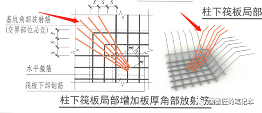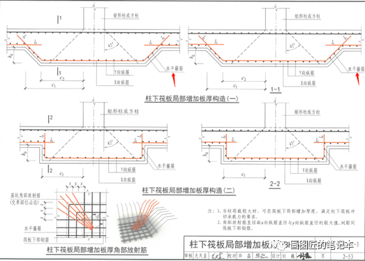 追加“柱下筏板局部性增加板厚展枝放射治疗筋”Brionne弱化如下表右图: